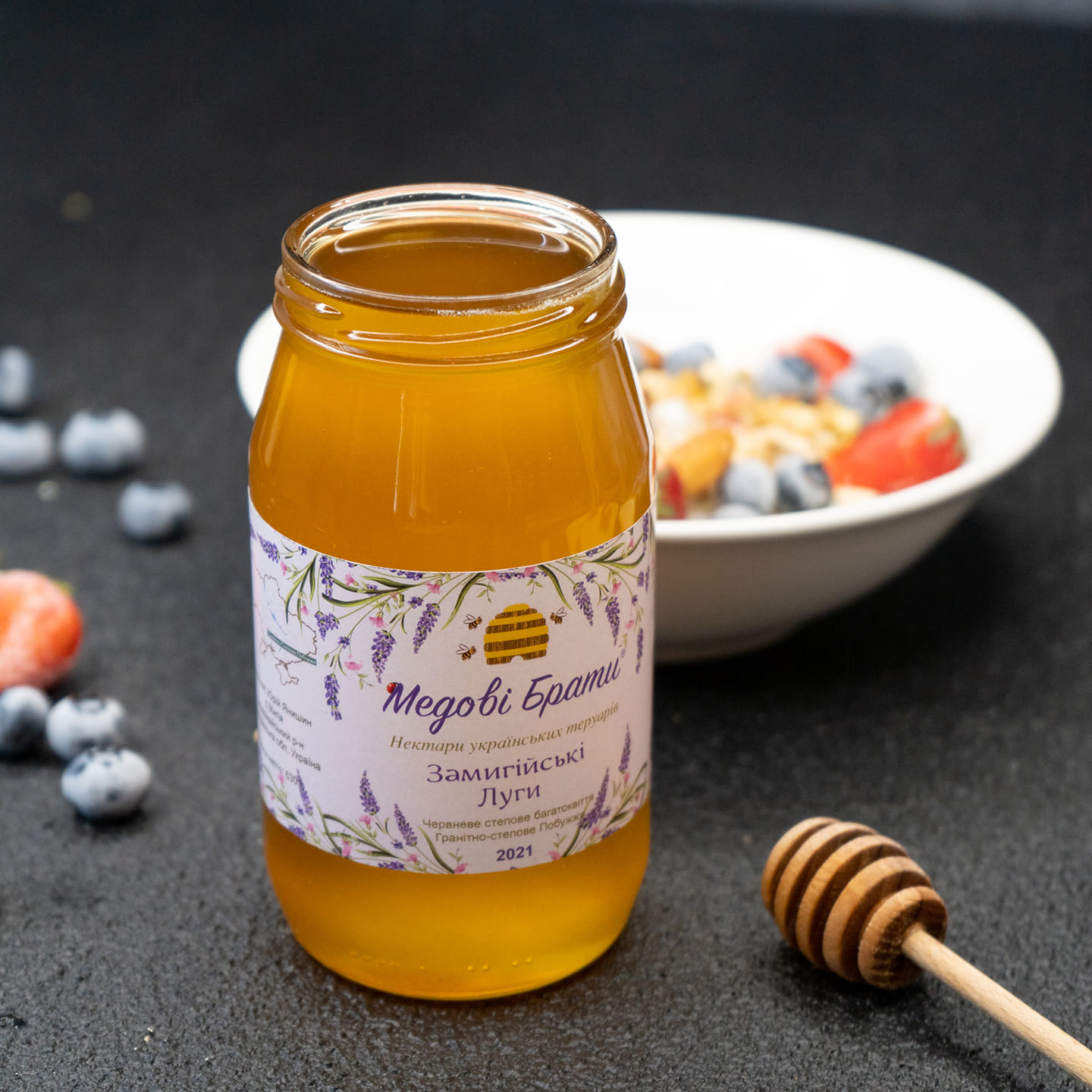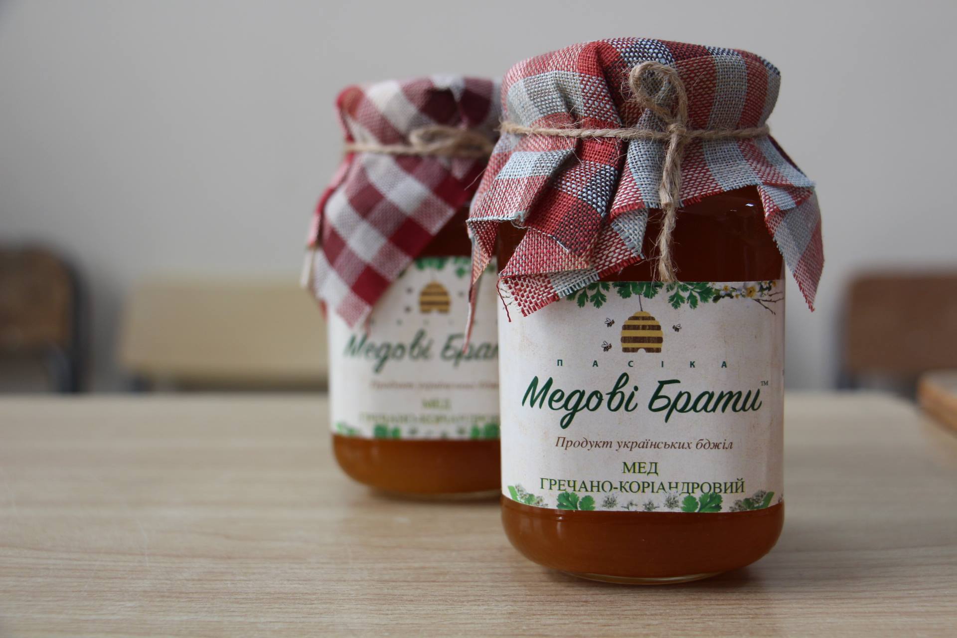 Мед приїздить сюди безпосередньо з пасік усіх учасників спільноти Медових Братів, і після вхідного контролю якості відразу фасується в баночки.